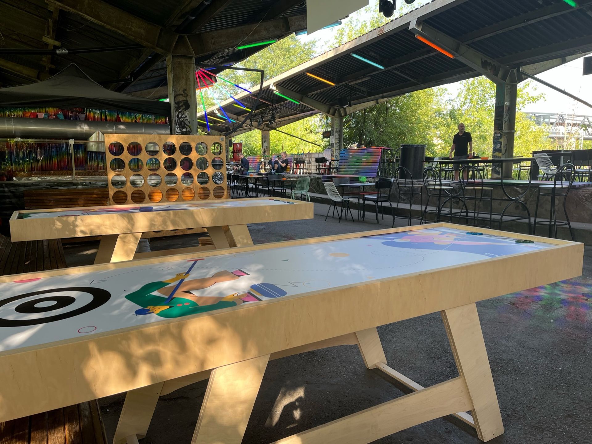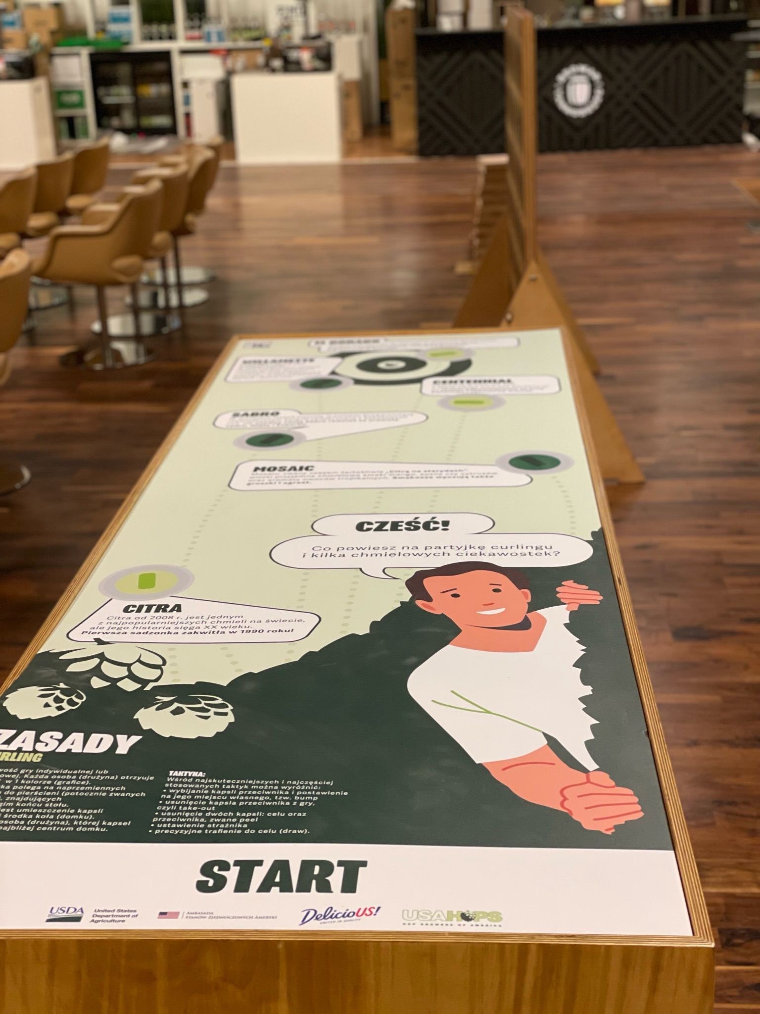 Rozgrywka polega na naprzemiennych strzałach do pierścieni, znajdujących się na drugim końcu stołu. Celem gry jest umieszczenie krążków jak najbliżej środka "domku". Niestety w tej wersji nie ma możliwości szorowania szczotką po planszy.